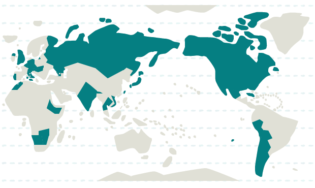 イギリス、イタリア、オーストリア、オランダ、スイス、スロバキア、チェコ、ドイツ、ハンガリー、ベルギー、ポルトガル、リヒテンシュタイン、ルクセンブルク、ロシア、ジョージア