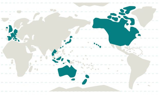 インドネシア、韓国、シンガポール、タイ、台湾、香港、日本