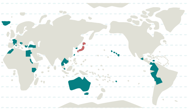 韓国、カンボジア、シンガポール、タイ、台湾、日本