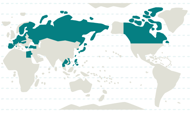 エストニア、オーストリア、オランダ、スイス、スウェーデン、チェコ、デンマーク、ドイツ、ハンガリー、フィンランド、フランス、ベルギー、ポーランド、ルクセンブルク、トルコ、ラトビア、リトアニア、ロシア、スペイン、ポルトガル、ギリシャ