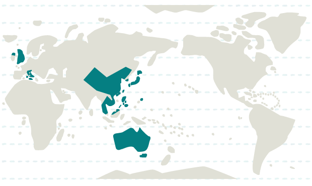 日本、韓国、台湾、フィリピン、マレーシア、カンボジア、香港、タイ、ベトナム、中国、マカオ