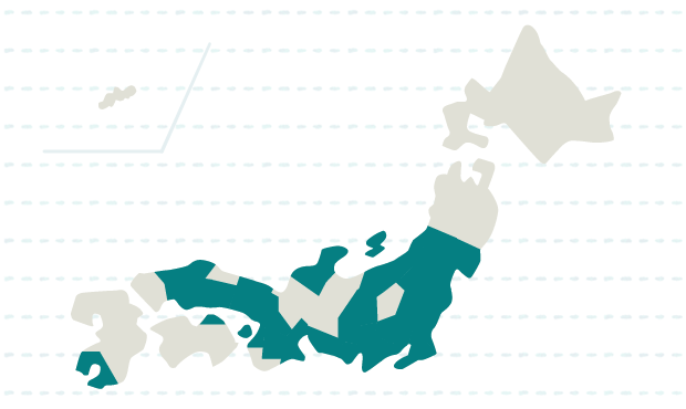 宮城、山形、福島、茨城、栃木、埼玉、千葉、東京、神奈川、新潟、石川、山梨、長野、静岡、愛知、三重、京都、大阪、兵庫、奈良、島根、岡山、広島、香川、鹿児島