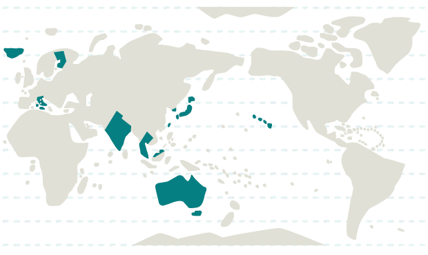 韓国、シンガポール、タイ、台湾、マレーシア、日本、インド