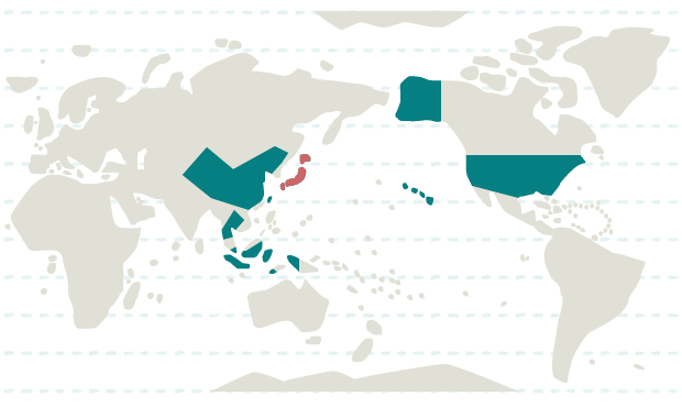 日本、インドネシア、シンガポール、タイ、台湾、中国