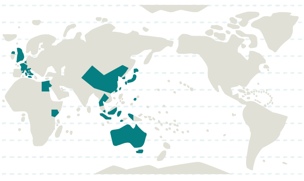 台湾、インドネシア、韓国、シンガポール、タイ、中国、香港、日本