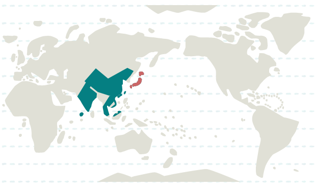 日本、インド、タイ、台湾、中国、ベトナム、香港、マカオ、マレーシア、モルディブ、ラオス