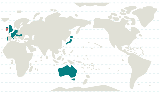 アイルランド、イギリス、オーストリア、ハンガリー、スイス、フランス、ポルトガル、オランダ、ドイツ、ベルギー