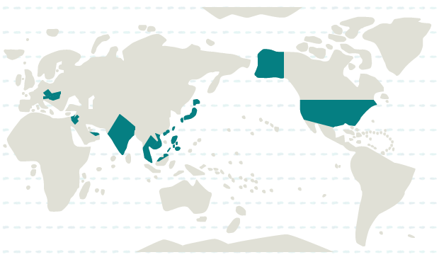 台湾、香港、マカオ、日本、インド、カンボジア、シンガポール、タイ、ベトナム、マレーシア、ネパール、フィリピン
