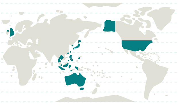 日本、インドネシア、韓国、シンガポール、タイ、台湾、香港、フィリピン