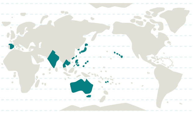 オーストラリア、北マリアナ諸島(サイパン)、グアム、パラオ、フィジー