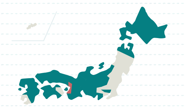 北海道、青森、群馬、東京、新潟、富山、石川、福井、長野、岐阜、静岡、愛知、三重、滋賀、京都、大阪、兵庫、奈良、和歌山、鳥取、島根、岡山、広島、山口、香川、愛媛、高知、福岡、佐賀、長崎、熊本、大分、宮崎