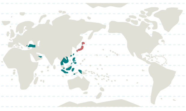 インドネシア、フィリピン、日本、台湾、タイ、ベトナム、香港、カンボジア、シンガポール
