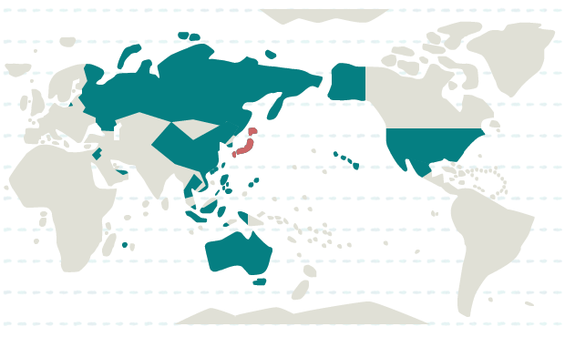 インドネシア、韓国、シンガポール、タイ、台湾、中国、フィリピン、ベトナム、香港、マカオ、日本