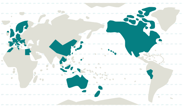 インドネシア、韓国、カンボジア、シンガポール、タイ、台湾、中国、香港、日本