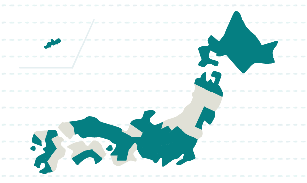 北海道、青森、宮城、茨城、栃木、群馬、埼玉、千葉、東京、神奈川、富山、石川、山梨、長野、岐阜、静岡、愛知、滋賀、京都、大阪、兵庫、奈良、鳥取、島根、岡山、広島、高知、福岡、長崎、熊本、鹿児島、沖縄