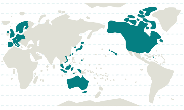 イギリス、イタリア、オーストリア、オランダ、スイス、スウェーデン、スペイン、チェコ、デンマーク、ドイツ、ノルウェー、バチカン、フィンランド、フランス、ベルギー、ポーランド、ポルトガル、サンマリノ、モナコ、リヒテンシュタイン