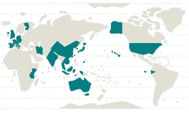 韓国、カンボジア、タイ、中国、日本、インドネシア、台湾、香港、シンガポール、インド、ベトナム、マレーシア、ラオス