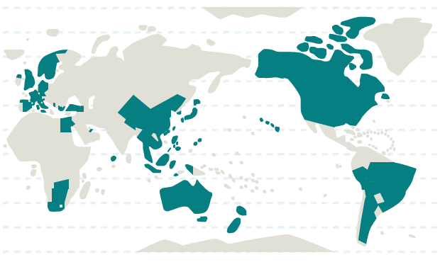 韓国、カンボジア、シンガポール、タイ、台湾、中国、ネパール、フィリピン、ブルネイ、ベトナム、香港、マカオ、マレーシア、ミャンマー、モルディブ、日本、インドネシア