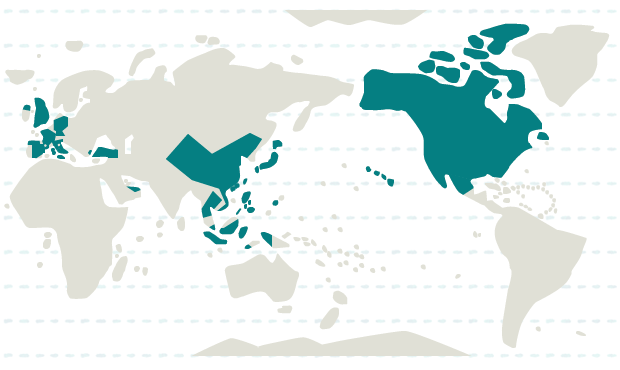 日本、シンガポール、タイ、台湾、中国、フィリピン、ベトナム、香港、マカオ、インドネシア