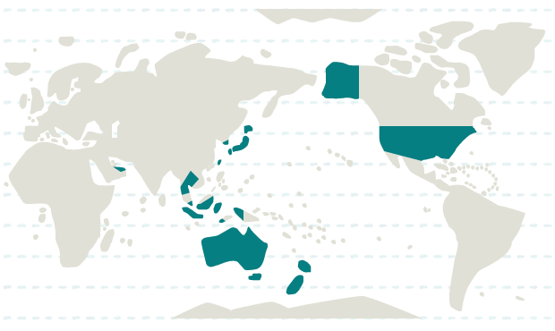 インドネシア、シンガポール、日本、台湾、タイ、韓国