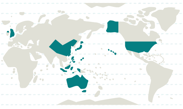 オーストラリア、北マリアナ諸島(サイパン)、グアム
