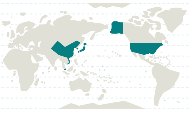 日本、ベトナム、韓国、シンガポール、中国