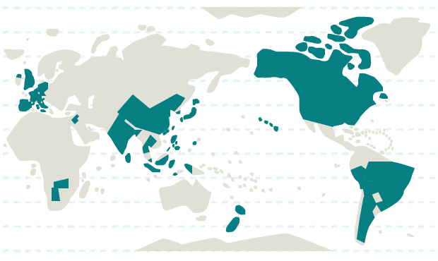インド、インドネシア、韓国、シンガポール、スリランカ、タイ、台湾、中国、バングラデシュ、フィリピン、香港、マカオ、日本