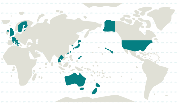 オーストラリア、北マリアナ諸島(サイパン)、グアム、ニュージーランド