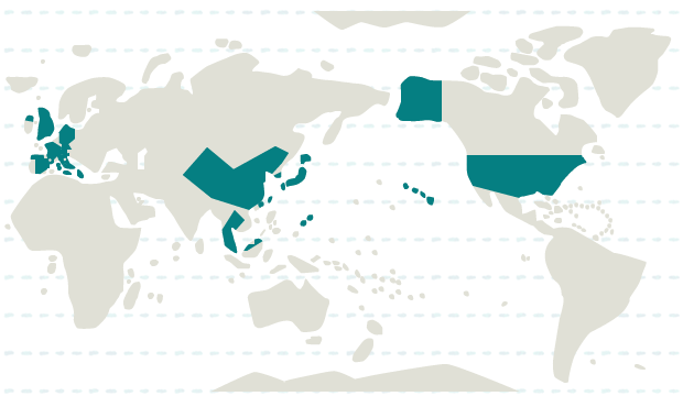 韓国、シンガポール、タイ、台湾、中国、香港、マレーシア、日本
