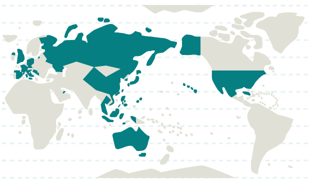 日本、インドネシア、韓国、シンガポール、タイ、台湾、中国、フィリピン、ベトナム、香港、マカオ、マレーシア