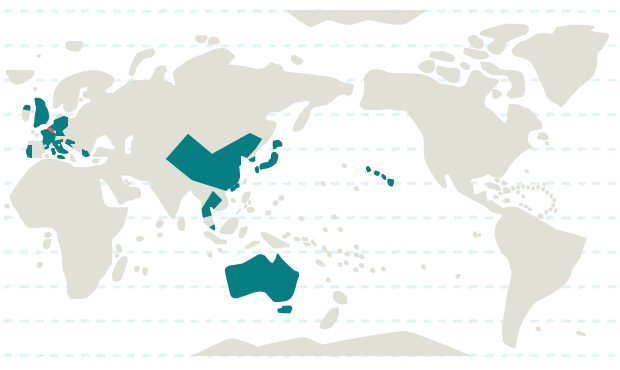 韓国、シンガポール、タイ、中国、香港、マカオ、日本