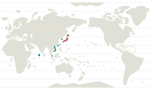 日本、韓国、シンガポール、台湾、ベトナム、香港、モルディブ