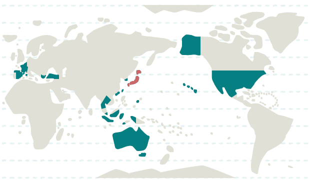 インドネシア、韓国、シンガポール、タイ、台湾、香港、日本、マカオ