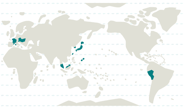韓国、台湾、日本、シンガポール、マレーシア