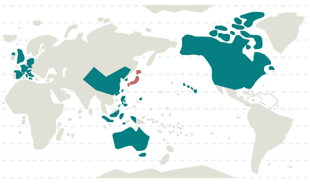 インドネシア、韓国、台湾、中国、フィリピン、香港、マカオ、日本