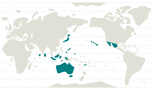 北マリアナ諸島(サイパン)、グアム、パラオ、オーストラリア、フィジー、ミクロネシア連邦