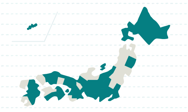 北海道、岩手、茨城、群馬、埼玉、千葉、東京、神奈川、新潟、福井、山梨、長野、岐阜、静岡、愛知、三重、京都、大阪、兵庫、奈良、鳥取、島根、広島、徳島、香川、高知、福岡、熊本、大分、宮崎、沖縄