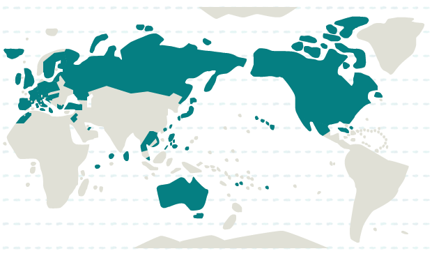 アイスランド、イギリス、イタリア、エストニア、オーストリア、オランダ、ギリシャ、クロアチア、スイス、スペイン、チェコ、ドイツ、トルコ、ハンガリー、フィンランド、フランス、ベルギー、ポーランド、マルタ、ラトビア、リトアニア、ロシア、スウェーデン、アイルランド、ポルトガル、ルクセンブルク