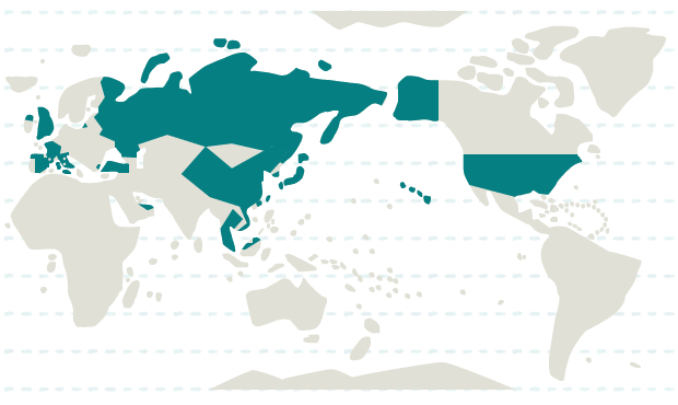 韓国、シンガポール、タイ、台湾、ベトナム、香港、マレーシア、日本、中国