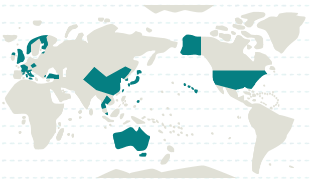イギリス、バチカン、イタリア、フランス、チェコ、フィンランド、エストニア、ノルウェー、トルコ