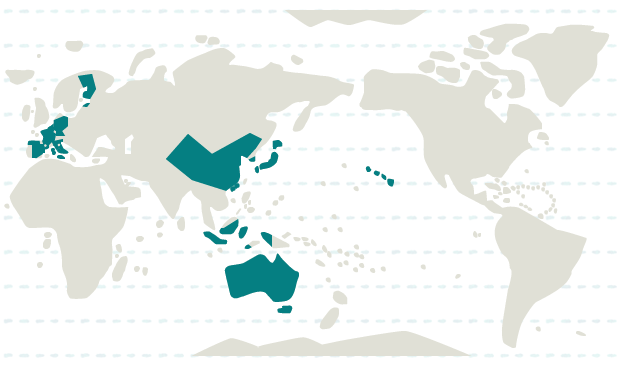 インドネシア、韓国、中国、香港、マカオ、日本