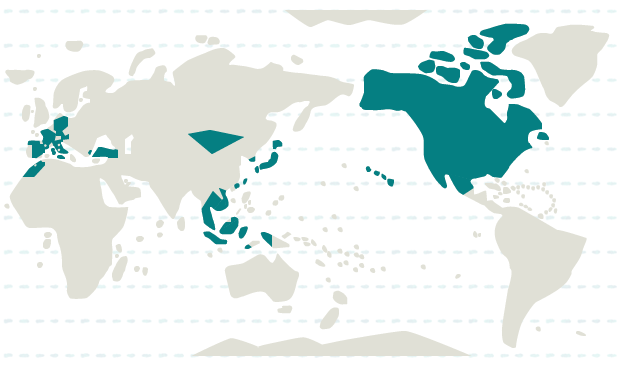 インドネシア、韓国、カンボジア、シンガポール、タイ、台湾、香港、マレーシア、日本、ベトナム、モンゴル
