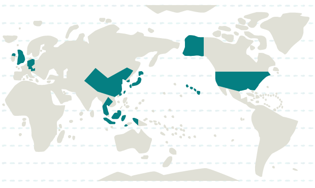 インドネシア、韓国、タイ、台湾、中国、香港、マレーシア、日本