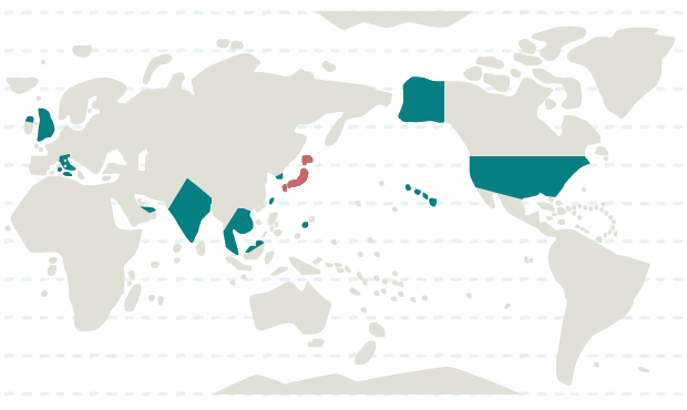 インド、韓国、カンボジア、シンガポール、タイ、台湾、ネパール、ベトナム、マレーシア、ラオス、日本