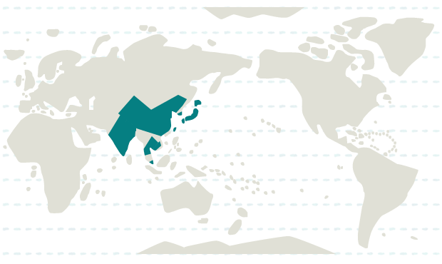 インド、韓国、カンボジア、シンガポール、タイ、台湾、中国、ネパール、日本