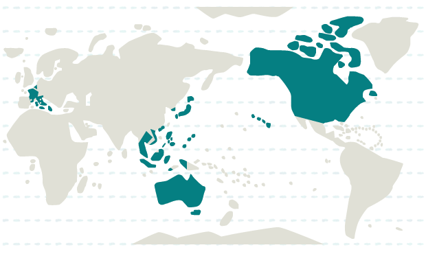オーストラリア、北マリアナ諸島(サイパン)、グアム、パラオ