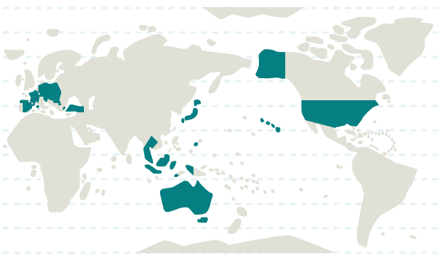 オーストリア、スロベニア、ドイツ、ハンガリー、スペイン、スロバキア、セルビア、チェコ、トルコ、フランス、ベルギー、ポーランド