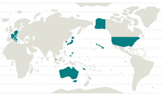 オーストラリア、グアム、ニューカレドニア、パラオ