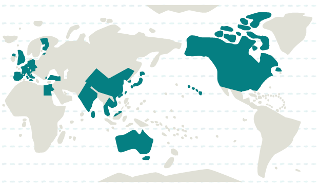 日本、インド、韓国、カンボジア、スリランカ、タイ、台湾、中国、ベトナム、香港、マカオ、マレーシア