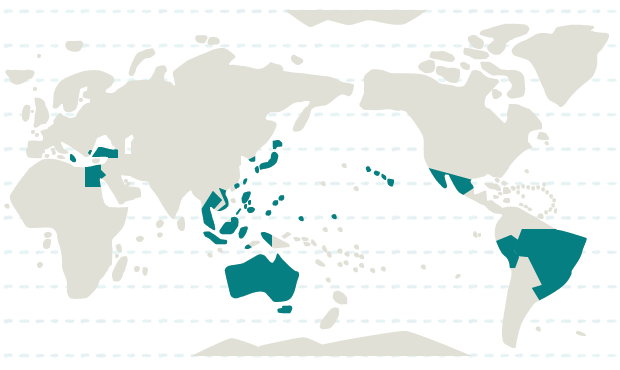 グアム、北マリアナ諸島(サイパン)、オーストラリア、パラオ、マーシャル諸島、ミクロネシア連邦